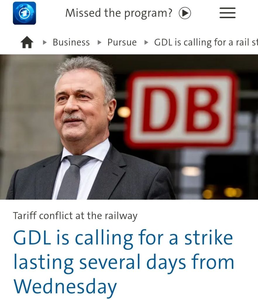 – Deutsche Bahn offers 11% pay increase, but no reduction in working hours.
