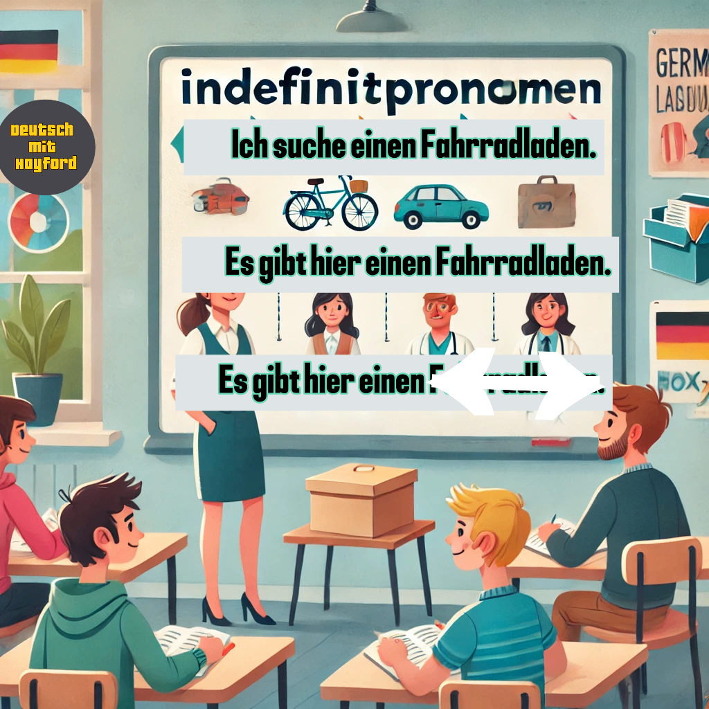 Indefinitpronomen (indefinite pronouns) are words that replace nouns without specifying exactly who or what you’re talking about. They are useful when you don’t want to repeat a noun or when the specific person or thing is not important.