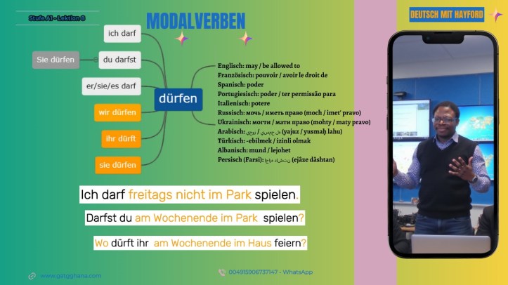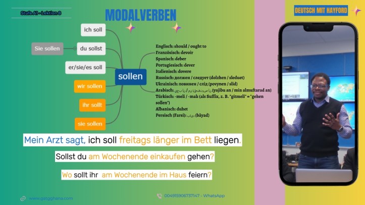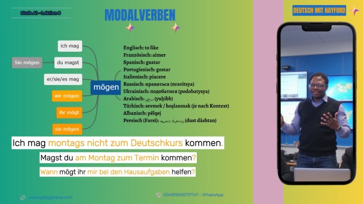 Modalverben verändern die Bedeutung des Hauptverbs und stehen im Präsens meist an zweiter Stelle, während das Hauptverb im Infinitiv am Satzende steht. (Modal fiiller, ana fiilin anlamını değiştirir ve genellikle şimdiki zamanda ikinci sırada yer alırken, ana fiil mastar halinde cümlenin sonunda bulunur.)