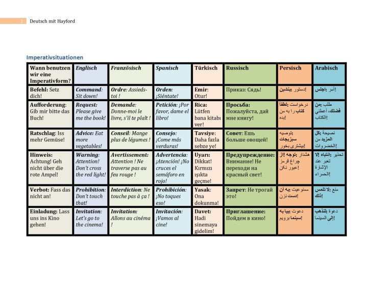 Der Imperativ wird verwendet, um Befehle, Ratschläge oder Aufforderungen auszudrücken.