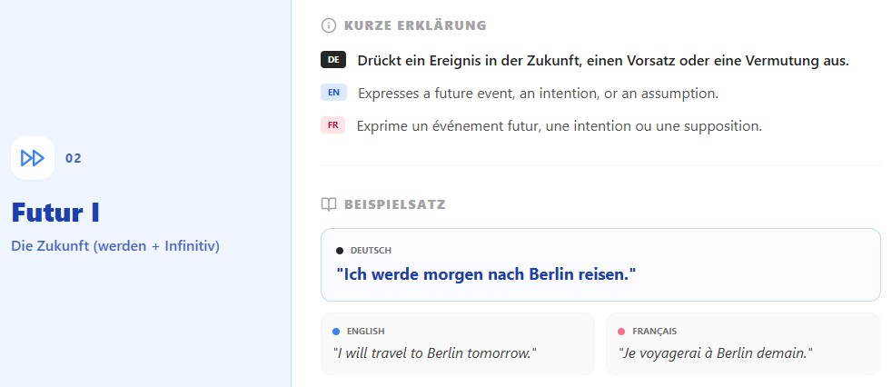 1. Präsens für die Zukunft / Present for the future / Présent pour le futur