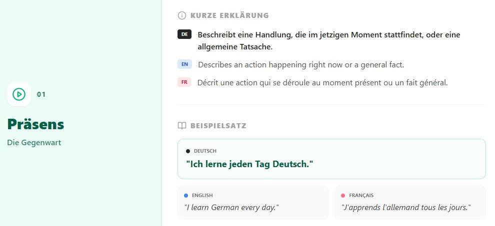 Kurzüberblick zur Grammatik / Grammar overview / Aperçu grammatical